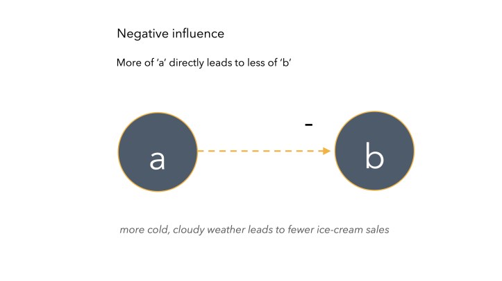 A node can have a direct effect on another in two ways – positive or negative – and the effect can be immediate, or delayed.